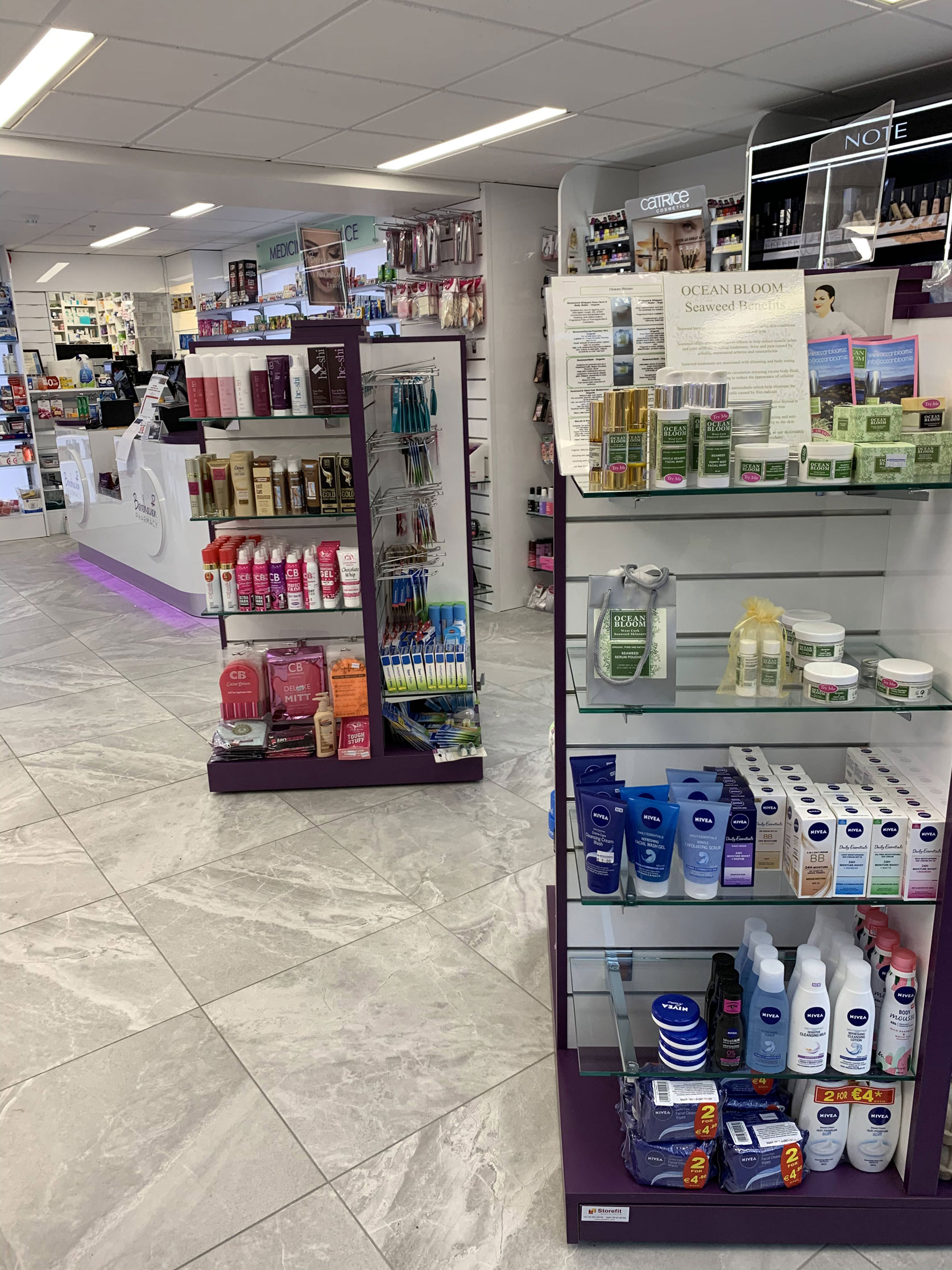 We offer a modern and unique shopping experience in Castletownbere. We provide a wide variety of essential and luxury beauty and fragrance brands, as well as premium healthcare products.